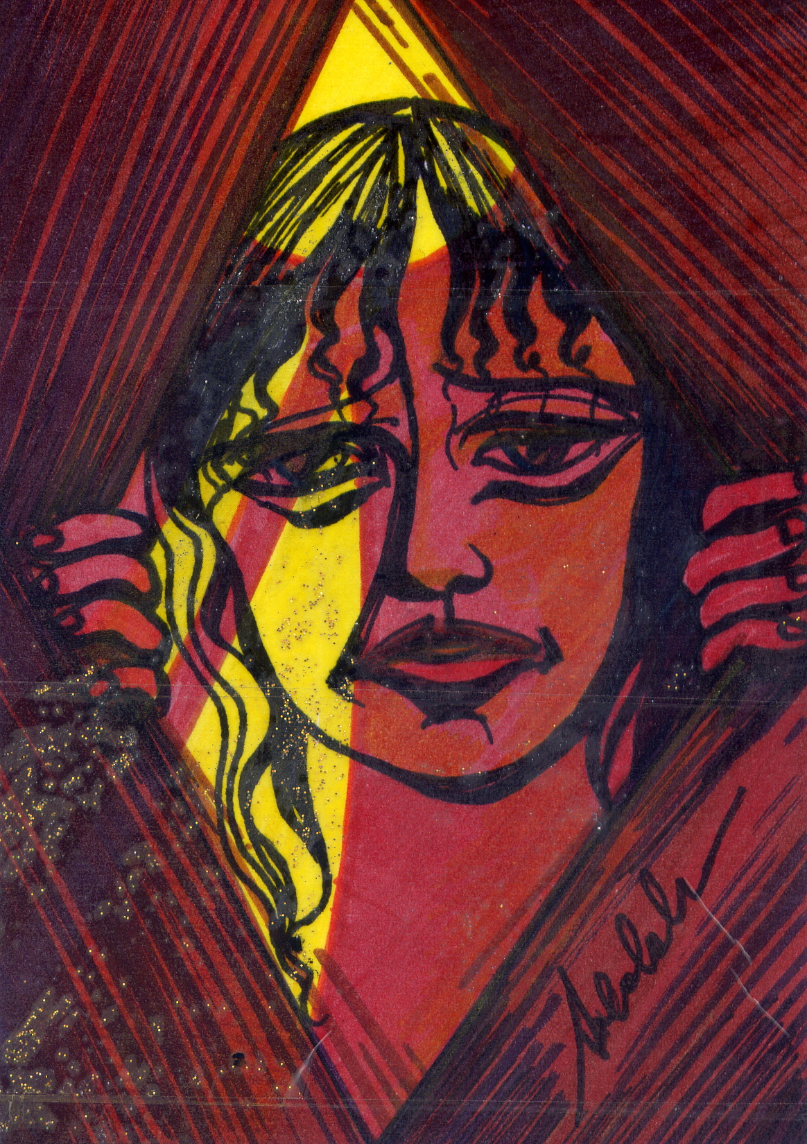 Antonia Calabrese. Lo spirglio (MA10/2013), pennarelli su cartoncino cm. 10x15, progetto "Wo+Men" in R.E.D. per esposizione 2015 - Collezione: Georgia Grigoriadou - Tessalonica - Grecia