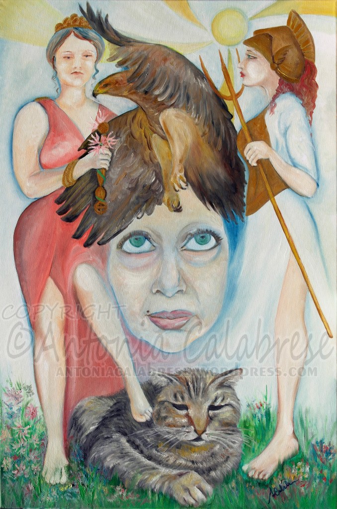 Nelle mie opere, il concetto di evocazione si traduce nell’uso di archetipi impressi nella coscienza collettiva e individuale. Ogni quadro richiama alla mente la divinità o il simbolo che ne è fonte d’ispirazione, utilizzando stereotipi e immagini che risvegliano memorie antiche e profonde.
